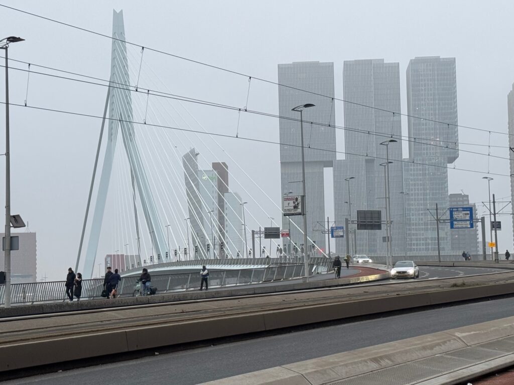 The Erasmus bridge. Three paths on this bridge, one for walking, one for biking, one for driving.
