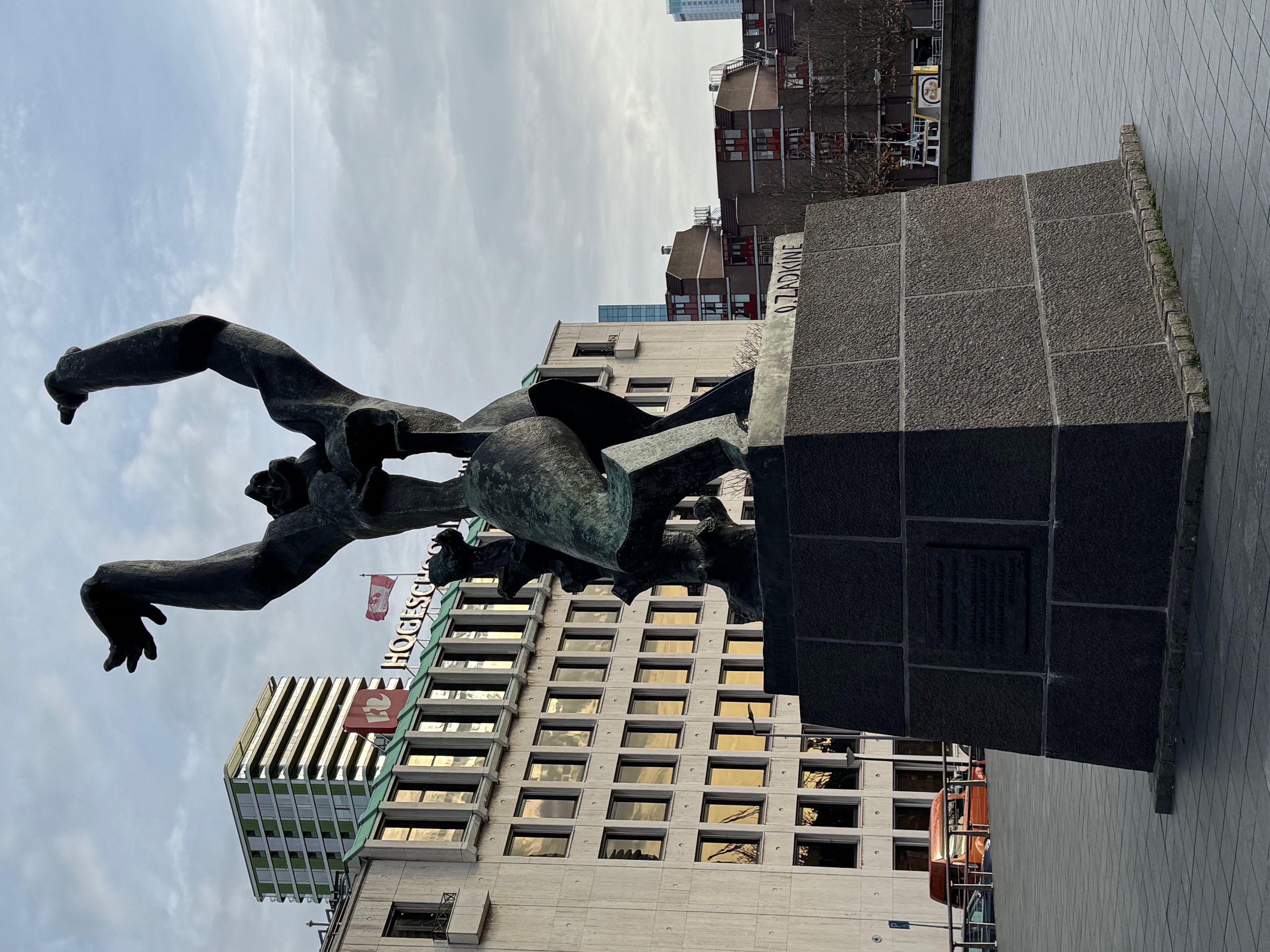 This statue is representative of the devastating bombing that took place in WW2. Interesting fact: The Germans built the base of this statue with the intent to put a statue of Hitler here. The Dutch drug their feet so much during construction that the war ended before the Hitler statue was placed. So now they use the base for this remembrance statue.