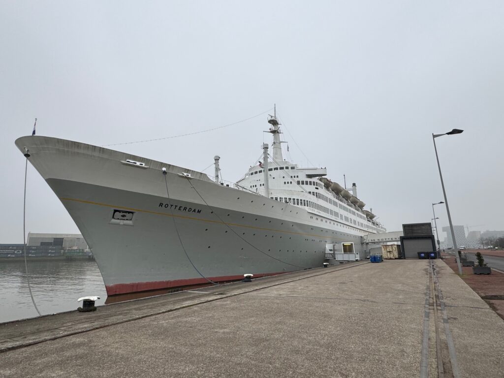 This ship, the SS Rotterdam, is permanently docked in Rotterdam now. It is a floating hotel. Anyone can stay there. But it used to be a Cruise Ship that sailed travel guests from 1959-2000. This boat took travelers to Alaska, main America and the Carribean. We toured the inside. It is quite fancy and beautiful.